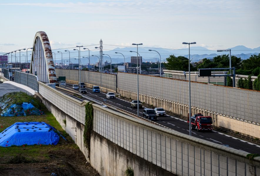 - 伊勢湾岸自動車道の高架下での夜間アート撮影